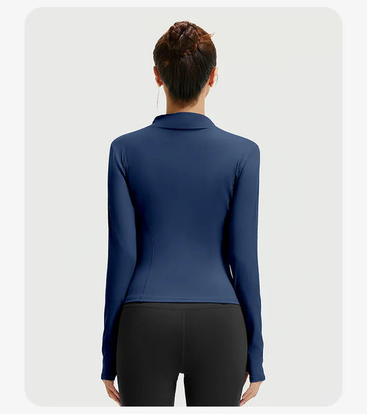 Slim Fit Zip-Up Long Sleeve Sports Jacket | Lightweight Stretch Workout Top for Yoga, Running & Training