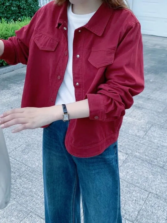 Women’s Polo Collar Denim Jacket – Loose Fit Button-Up Spring Cardigan