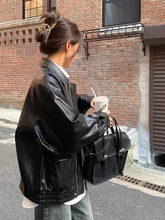 Slim Fit Moto Biker PU Leather Jacket for Women | Stylish Zipper Coat for Spring & Autumn Casual Looks