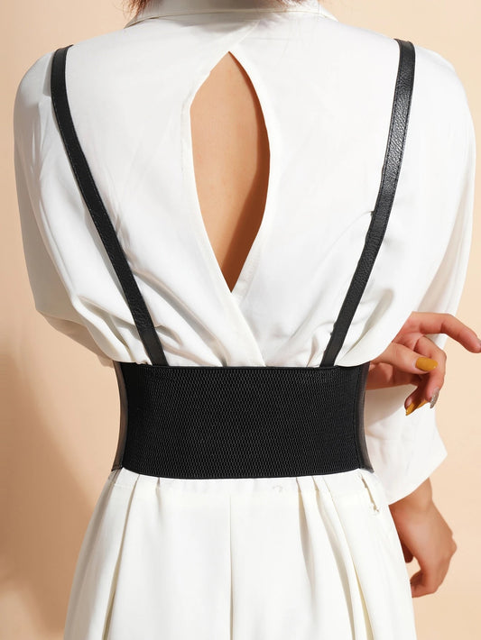 Steampunk Buckle Decor Harness Belt | Adjustable PU Wide Belt for Dresses & Coats