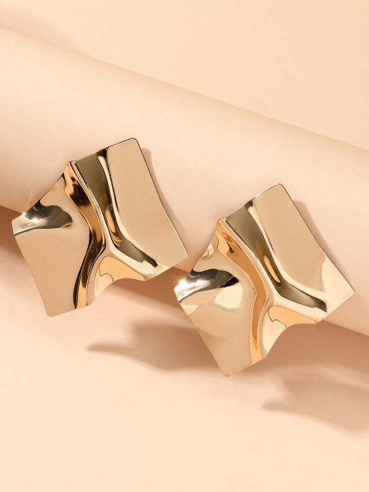 Shiny Gold & Silver Geometric Stud Earrings | Trendy Large Fashion Earrings