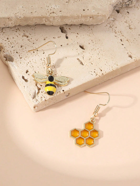 Cute Honey Hive & Bee Charm Earrings | 2pcs Bee Drop Earrings for Daily & Holiday Wear