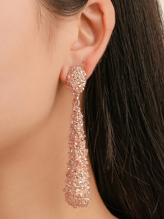 Matte Frosted Geometric Teardrop Earrings | Textured Metal Drop Earrings