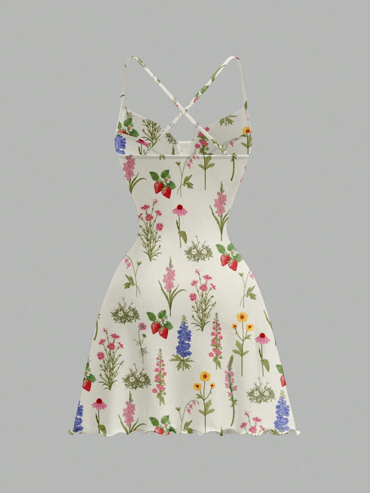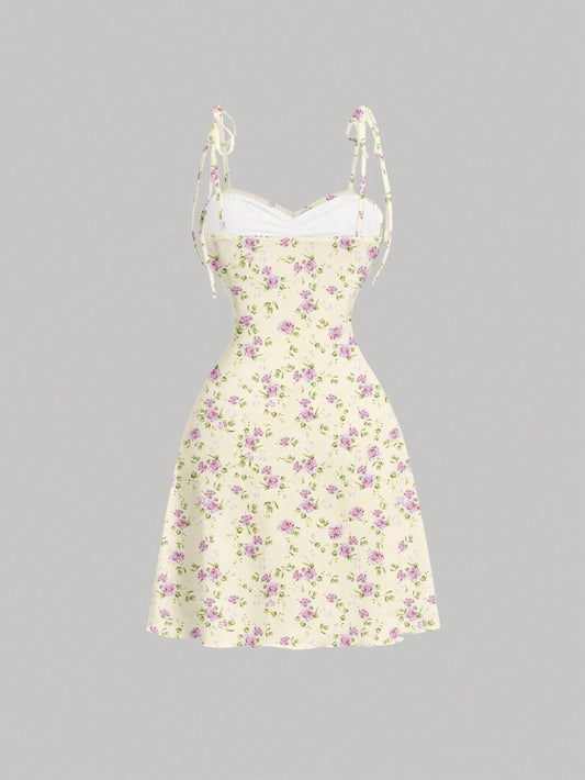 Floral Print Tie-Front Cami Mini Dress | Slim-Fit A-Line Knitted Summer Dress