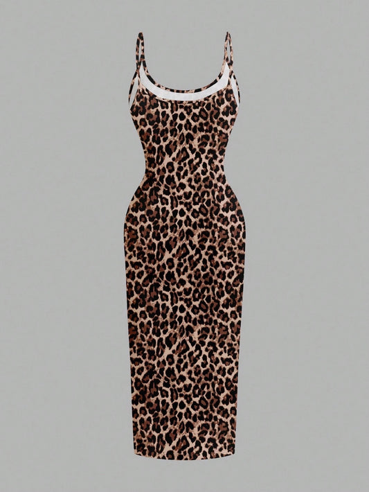 Leopard Print Spaghetti Strap Bodycon Midi Slip Dress – Minimalist Summer Going-Out Style