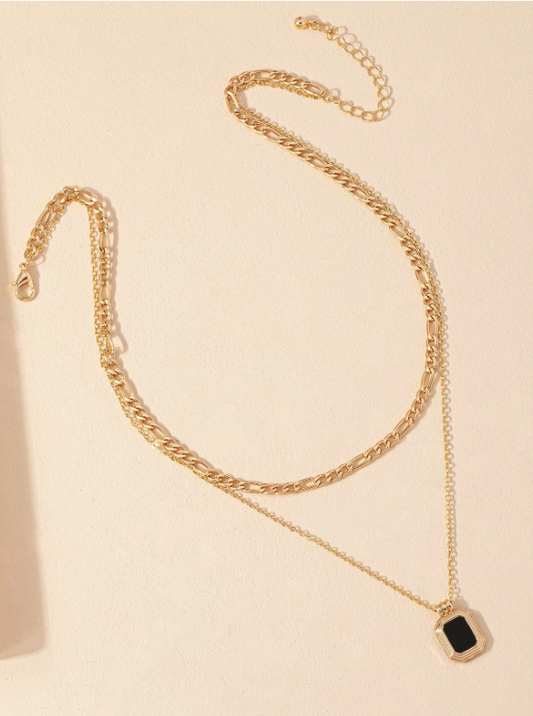 Layered Geometric Pendant Tag Necklace for Women – Trendy Multi-Layer Chain for Daily, Party & Casual Outfits