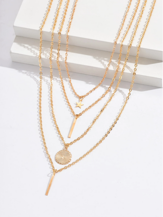 Disc & Star Charm Layered Necklace – Gold Minimalist Pendant for Everyday Chic & Trendy Outfits