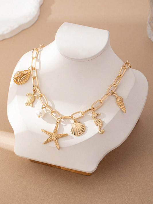 Ocean Life Pendant Necklace with Pearl & Shell Accents – Beach Vacation Jewelry for Women