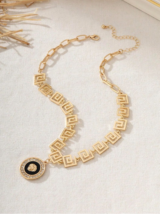 Bold Rhinestone Lion Head Pendant Necklace for Women – Gold Textured Statement Chain