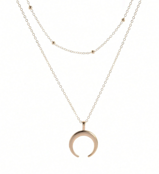 Double-Layer Punk Crescent Pendant Necklace – Gold Beaded Chain for Edgy & Trendy Everyday Looks
