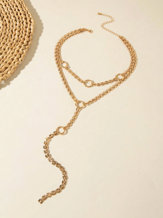 Minimalist Gold Y-Shaped Geometric Pendant Necklace – Chic Multi-Layer Chain
