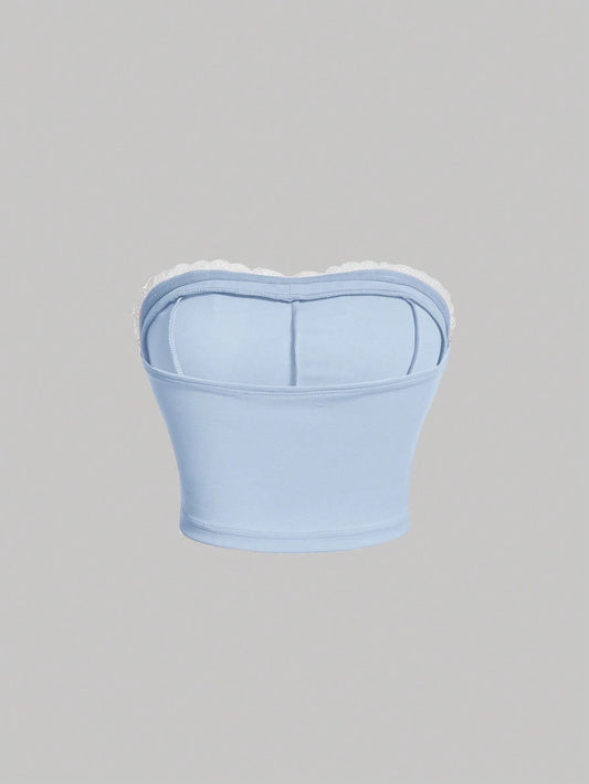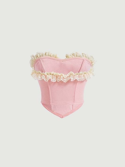 Bow Front Lace Trim Bandana Hem Corset Tube Top | Waist-Shaping Crop Top