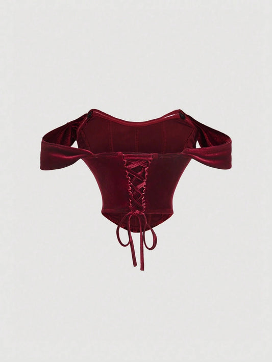 Vintage Velvet Strapless Asymmetrical Corset Crop Top | Romantic Slim-Fit Lace-Up Party Cami