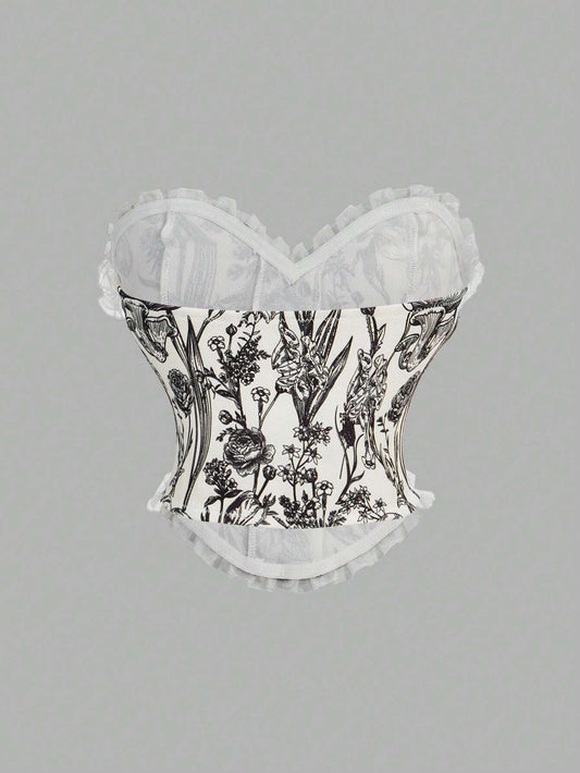Floral Patchwork Lace-Up Bustier Top | Strapless Milkmaid Corset Crop Top