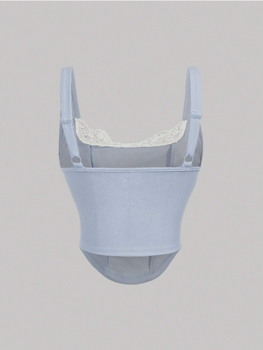 Retro Velvet Tank Top with Detachable Lace Collar & Bow – Elegant Party Camisole for Night Out or New Year Looks