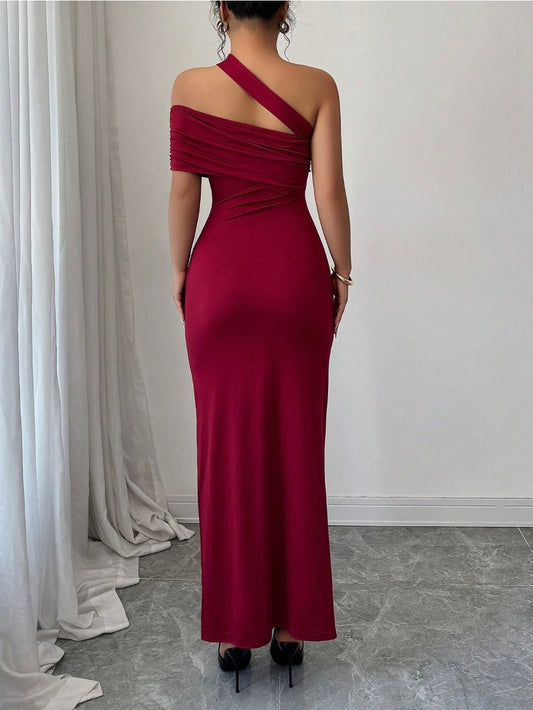 One-Shoulder Ruched Bodycon Midi Dress for Women – Asymmetrical Mermaid Hem, Backless, Spring Summer Partywear