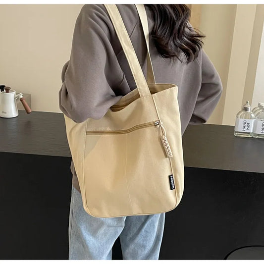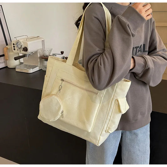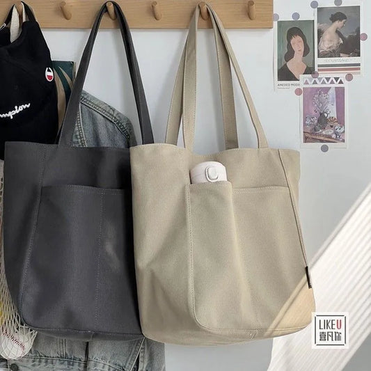 Japanese minimalist Canvas Tote Bag – Large Capacity Solid Color Travel Shoulder Bag