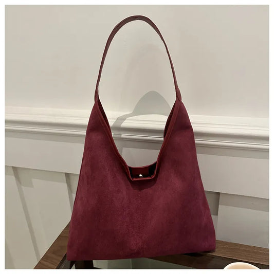 Suede Tote Bag – Large Capacity Soft Y2K Shoulder Bag with Zipper & Mobile Pocket