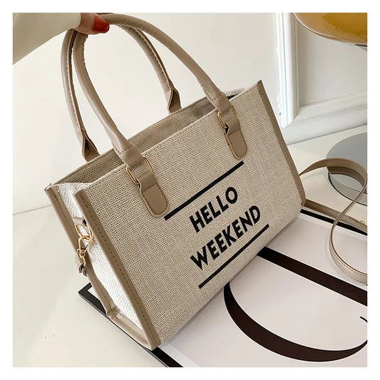 Women’s Canvas Shoulder Tote Bag – Stylish Letter Print, Large Capacity Travel & Student Bookbag