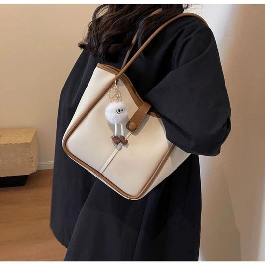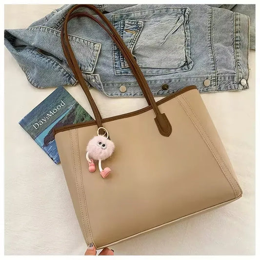 Tote Shoulder Bag – Large Capacity Zipper Tote with Keychain, Everyday Fashion Handbag