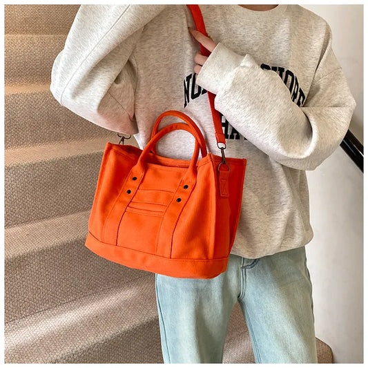 Canvas Shoulder Tote Bag – Solid Color Casual Satchel in Crossbody style