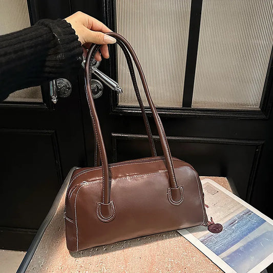 Minimalist Shoulder Bag – Classic Vintage Everyday Tote with Zipper & Large Capacity