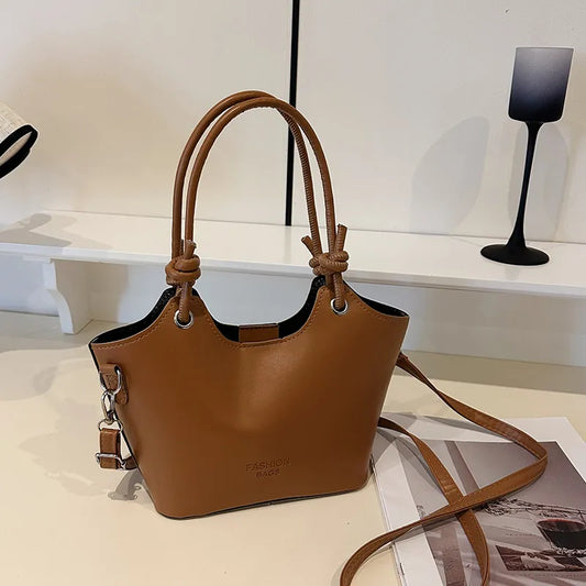 Bucket Bag – Retro Solid Color Shoulder & Crossbody Handbag with Adjustable Strap