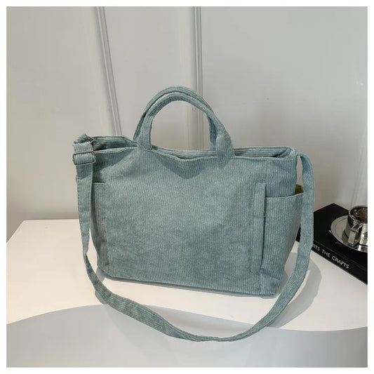 Corduroy Tote Bag – Large Capacity Soft Shoulder Bag, Casual Daily Office & College Carry