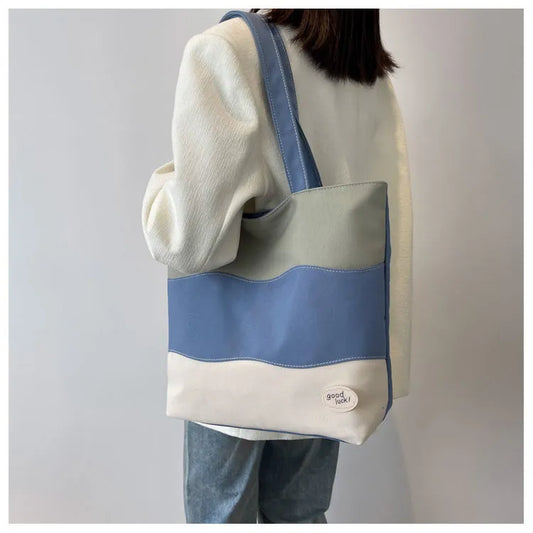 Large Canvas Tote Bag – Color Block Striped Shoulder & Shopping Bag, Lightweight & Spacious