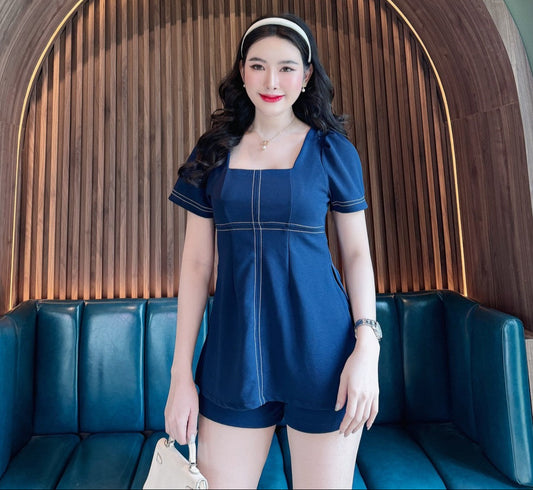 Elegant Wool Wave Co-ord Set for Women – Square Neck Long Top with Side Slits & Pocket Pants