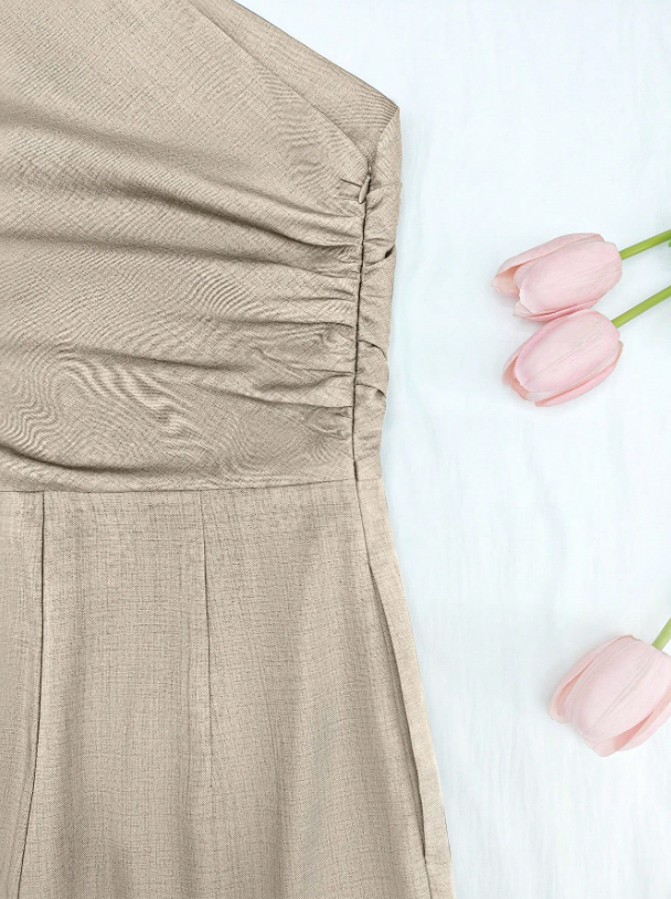 Elegant Asymmetric One-Shoulder Jumpsuit for Women – Sleeveless, High Waist, Ruched & Pleated