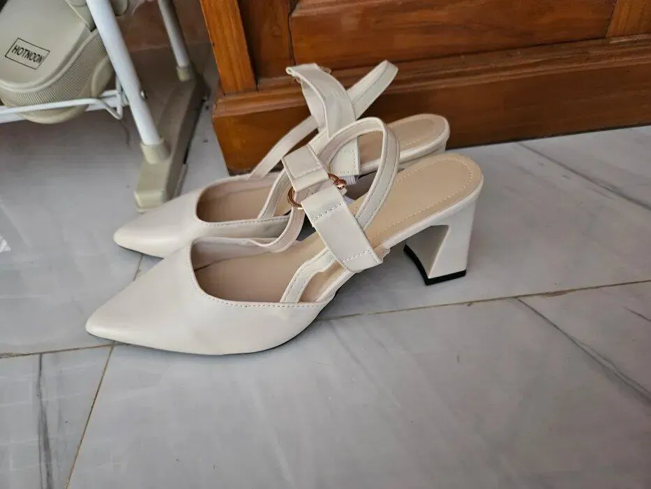 Step into chic elegance with these modern French-style slingback heels for women. Designed with a pointed toe, hollow back, and stylish square gold buckle, these PU leather sandals offer a sophisticated touch to your look. Perfect for office, daily wear, or special outings. Available in black, apricot, and off-white shades, sizes 35 to 42. The elastic band ensures a secure fit, while the French block heel adds subtle height and comfort. Must-have classy footwear for Gen Z and millennial fashionistas seeking stylish, affordable, and Insta-worthy looks.