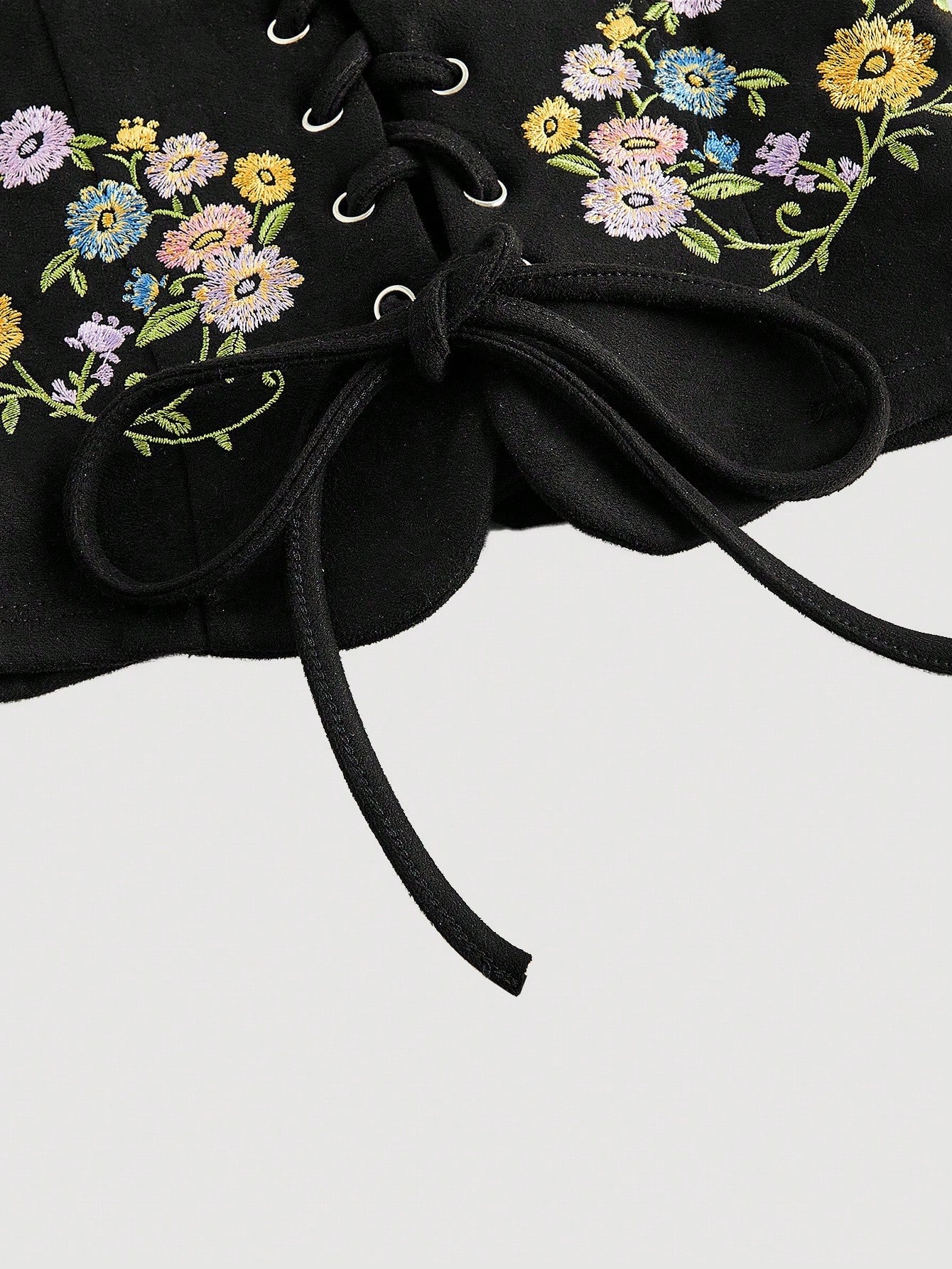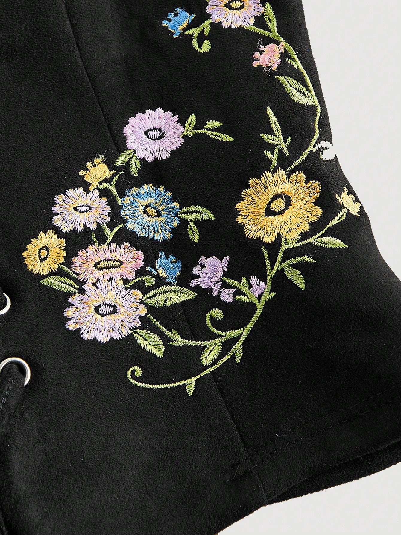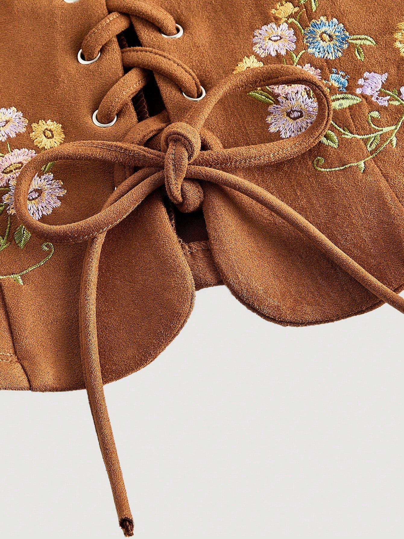- Details: Embroidered, Crisscross, Lace-Up Front, Grommet Eyelet
