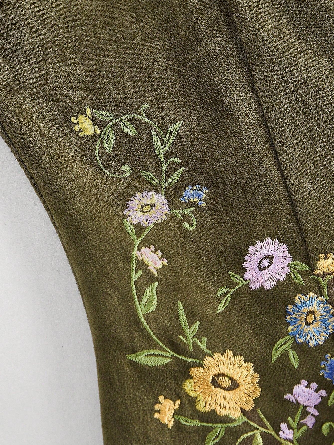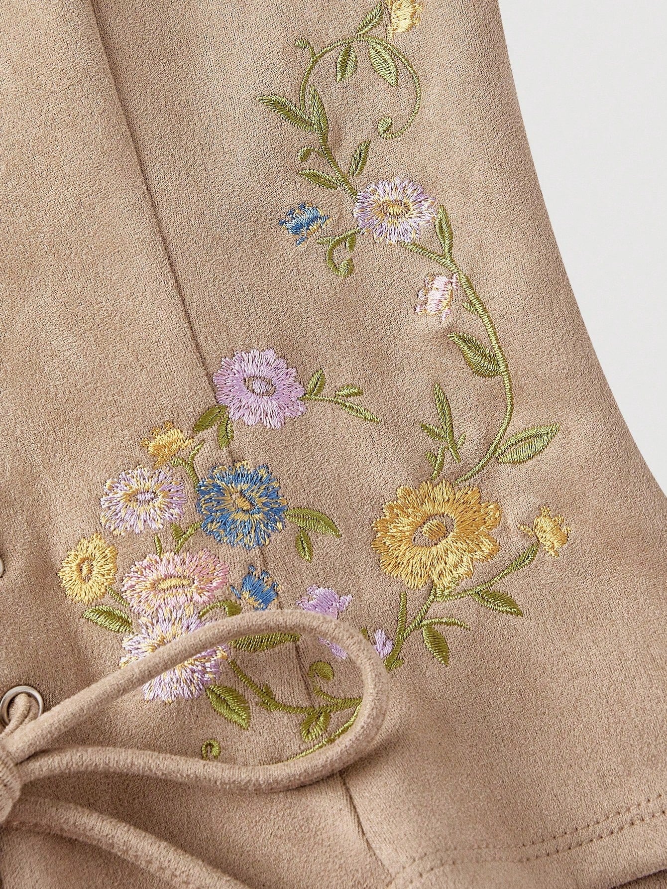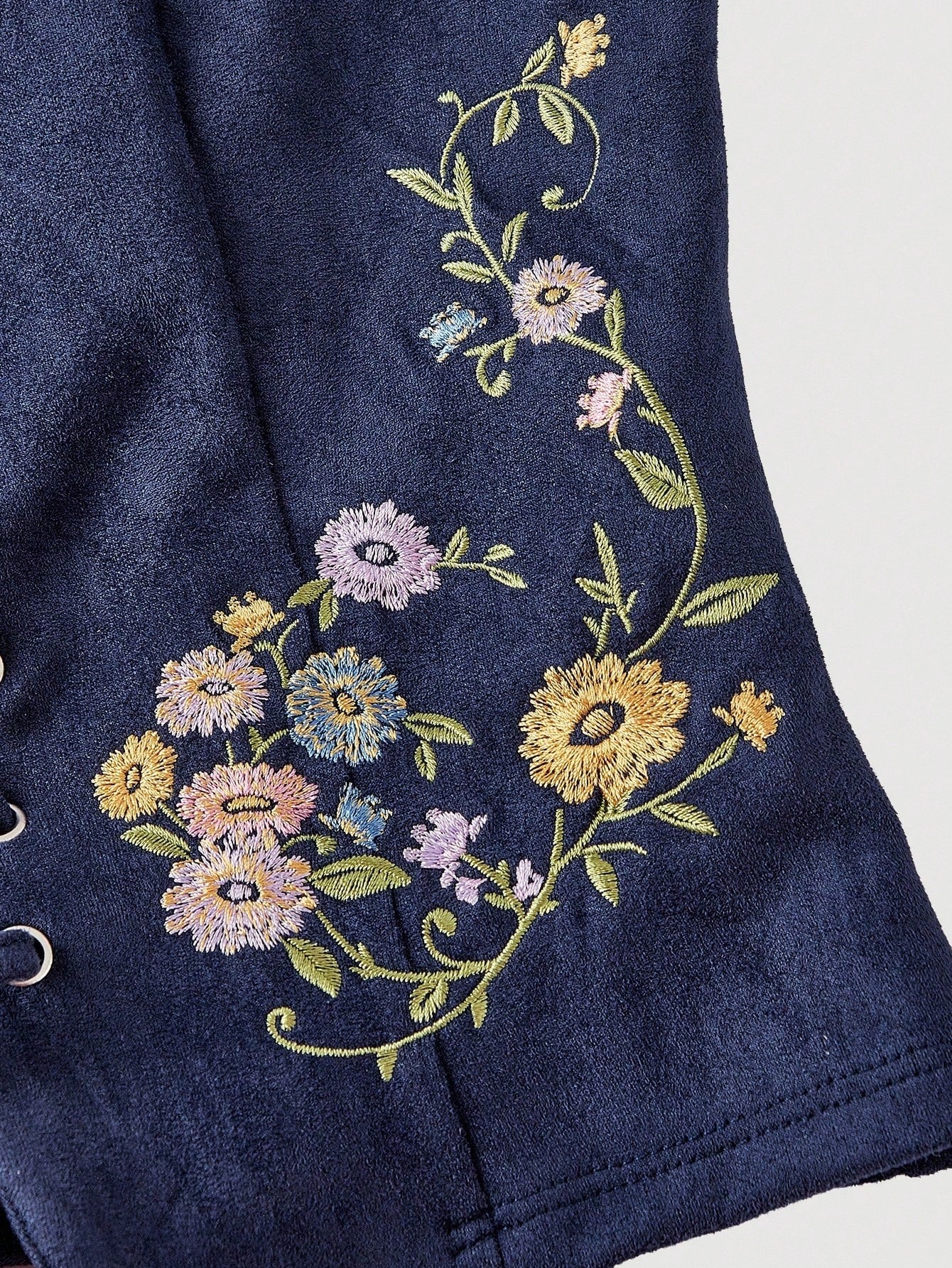 - Details: Embroidered, Crisscross, Lace-Up Front, Grommet Eyelet