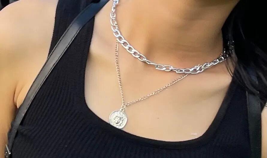 Hip Hop Coin Pendant Chain Necklace for Women – Adjustable Layered Punk Style in Gold & Silver Tone
