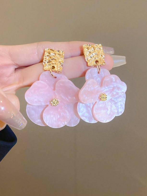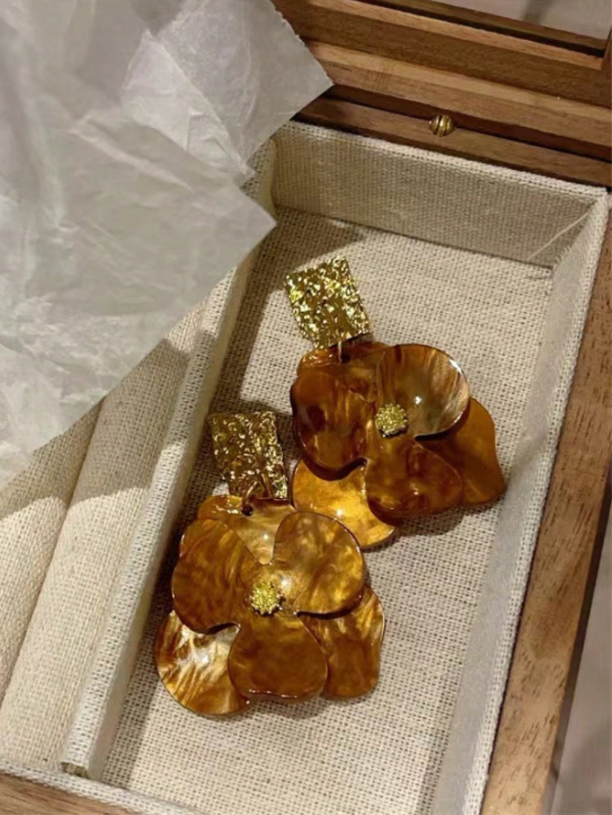 Metal & Acrylic Flower Stud Earrings for Women – Retro Elegant High-End Floral Jewelry, Vintage Fashion Statement