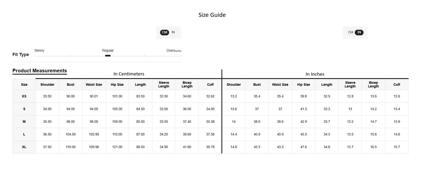 • Fit Type