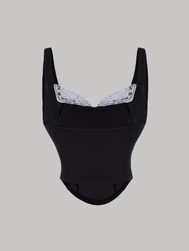 Retro Velvet Tank Top with Detachable Lace Collar & Bow – Elegant Party Camisole for Night Out or New Year Looks