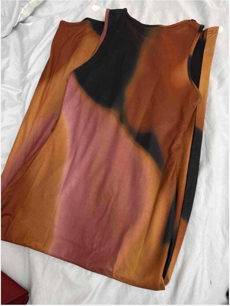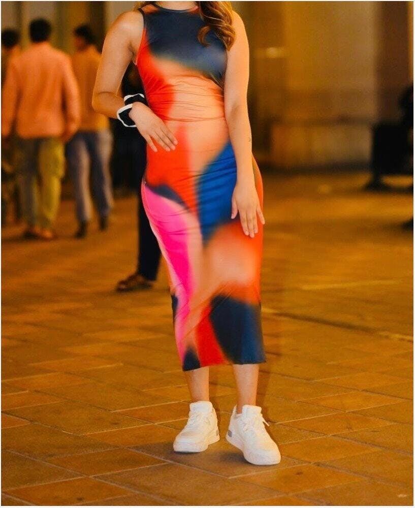 Elevate your wardrobe with this stunning tie-dye printed bodycon long dress for women, designed with a sleek round neckline, sleeveless silhouette, and daring split-thigh and backless details. Made from high-stretch knitted fabric with a slim-fit pencil hem, this ombre colorblock tank dress effortlessly hugs your curves, making it ideal for nights out, concerts, parties, and Insta-perfect moments. Available in vibrant hues like rose red, mocha brown, blue, green, and multicolor — this minimal yet bold style delivers comfort and flair for any fashionable Gen Z or Millennial craving edgy elegance.