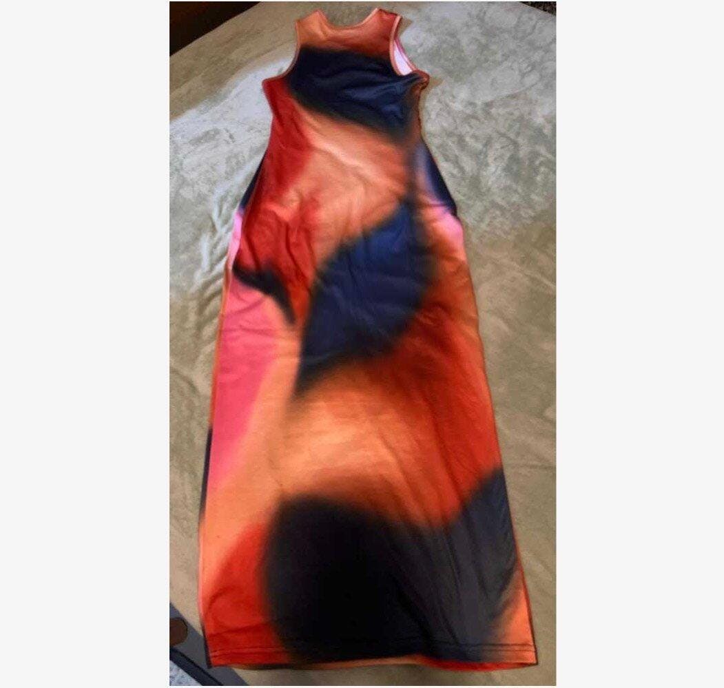 Tie-Dye Bodycon Long Dress for Women – Sleeveless Slim Fit with Round Neck, Slit & Backless Detail