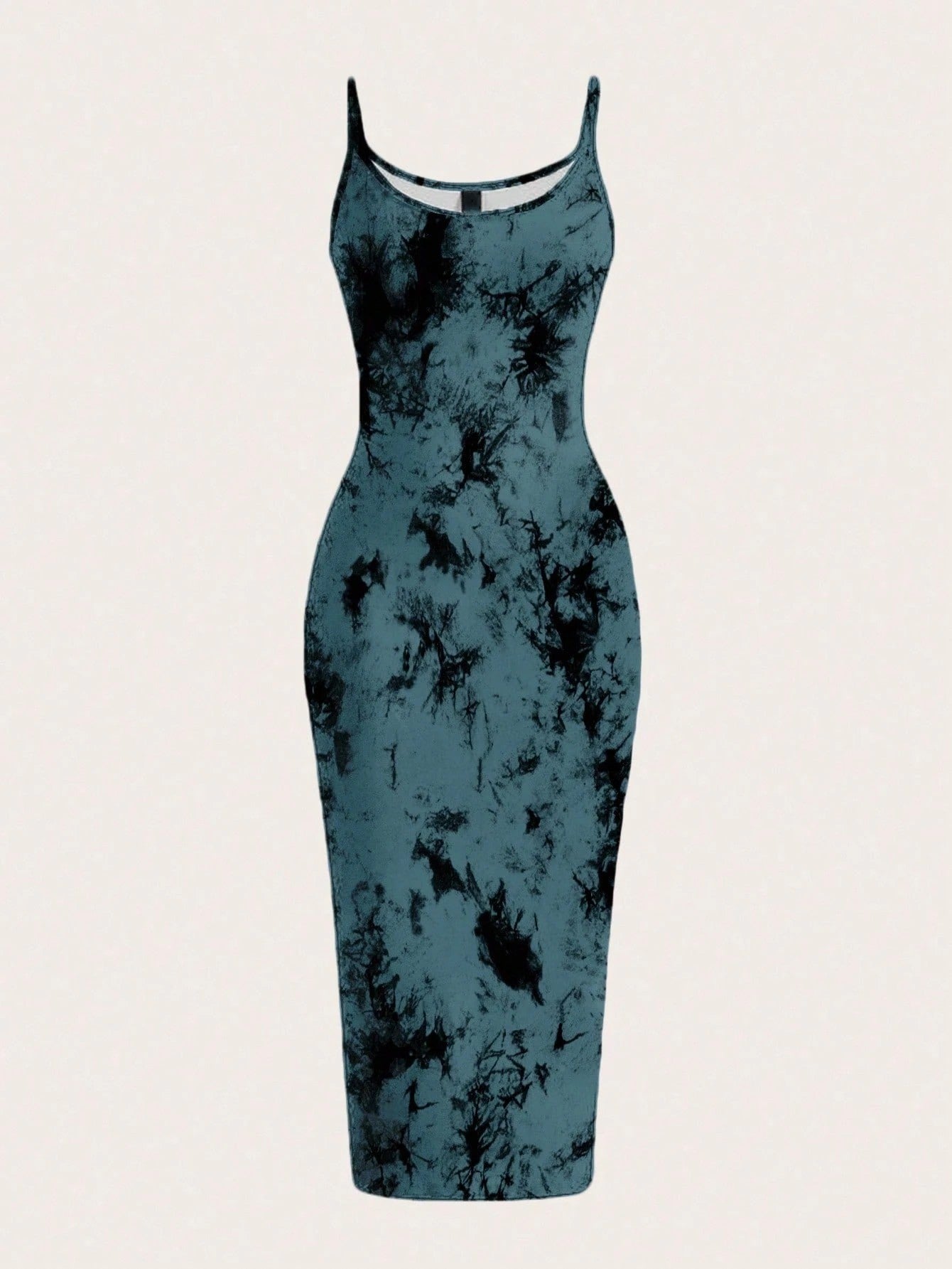 Tie-Dye Spaghetti Strap Bodycon Midi Dress – Minimal Summer Slip Dress
